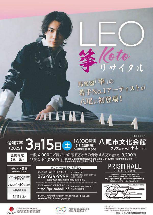 ◇プリズムホールウェブサイトチケット(公演3日前まで販売) https://prismhall.jp/ticket